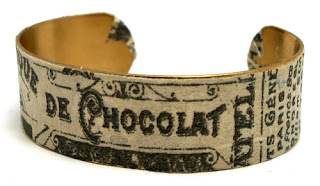 You see, tissue tape is not strong enough to stay bonded to the metal. And I have bad experiences trying to glue the sticky sides of stickers and tapes. Glue on glue just slides, it doesn't stick (until it dries if you're lucky). After I "made" this bracelet, I taped a bronze tag just to see if I could make it stick permanently by sealing it with decoupage glue/lacquer, but it didn't work. So I'll have to try actually glueing the tape to the metal and then apply a sealant/varnish on top, hoping it won't affect the tape.